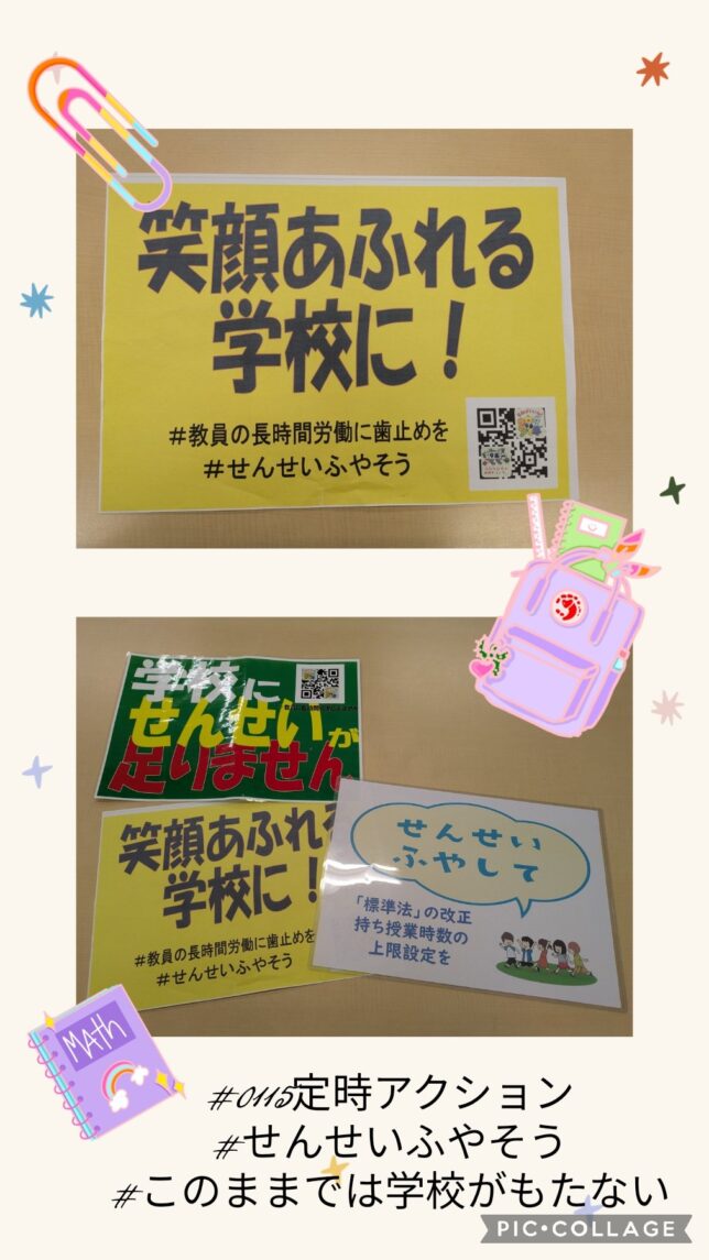 和歌山県教職員組合の青年部のとりくみ。Xの投稿から。よく見ると「定例会」とのこと。とてもステキです。