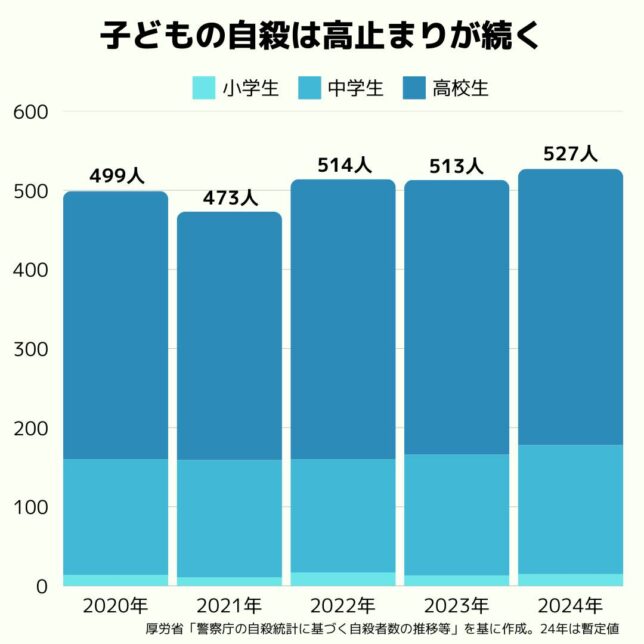 子どもたちが1年間に527人も自らの命を絶ってしまっている現実。このままでいいのでしょうか?
